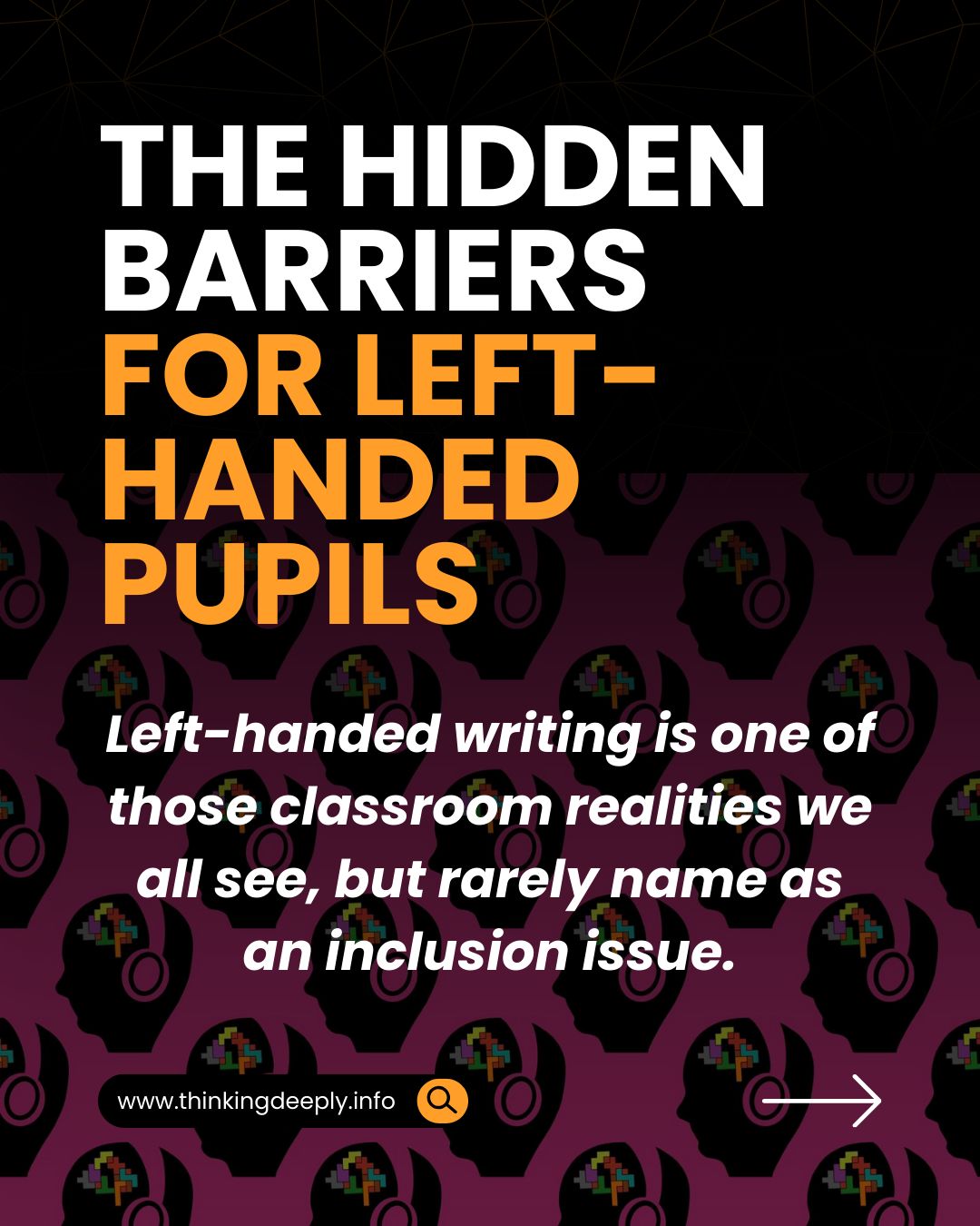 Mark explains why left-handers face predictable challenges in left-to-right writing systems: smudging, covering their work while copying, awkward “hooked” writing, and even discomfort in wrists and shoulders when paper position is treated as fixed. He also shares why teachers need to look beyond the finished page and focus on how writing is produced—because technique and grip matter far more for left-handers than we often realise.
